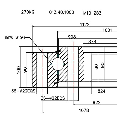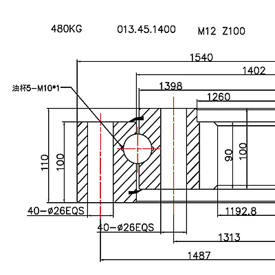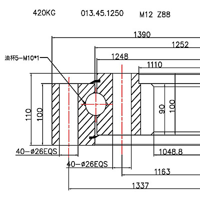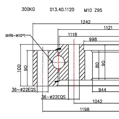 回轉(zhuǎn)支承選擇:實(shí)際使用承載力點(diǎn) 必須在承載能力曲線以下方可使用.